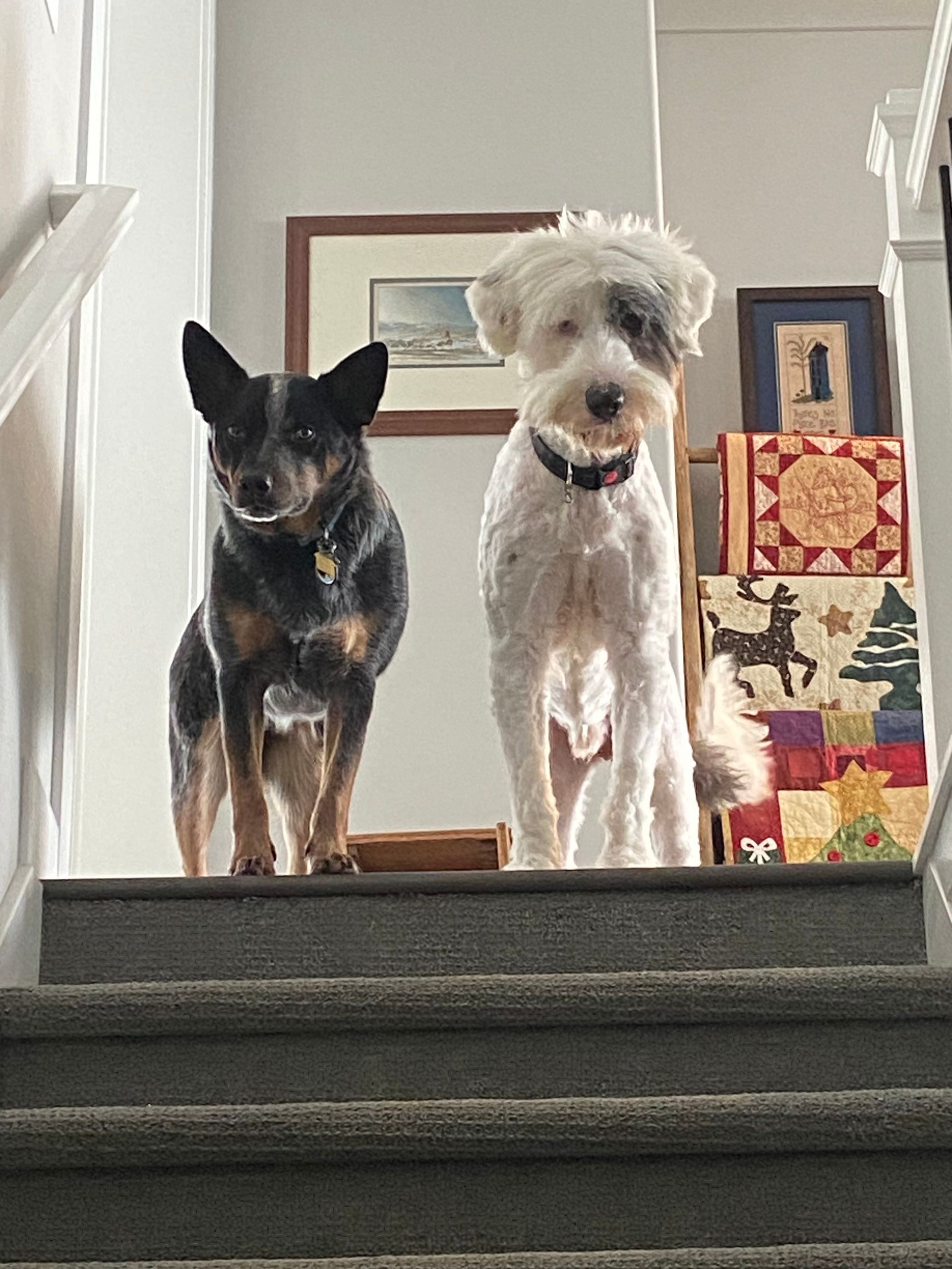 Bertram’s family shared that he’s goofy, stubborn, smart and has SUCH a big puppy spirit! He loves the snow, walks, tennis balls and any treat he can find. And while his enthusiasm for meeting new people is overwhelming at times, they are all working on it together! (And we can’t say we blame him - he’s finally found his humans!) Bertram has made friends with the Butterfields’ son's Blue Heeler, Apollo. In fact, despite not loving the doggie door at first, Bertram learned to love it after Apollo came over for some visits showed him the ropes! Unfortunately, their other son's Shih tzu is still a little leery but who knows what will happen over time! (We can imagine the size difference is a bit intimidating.)